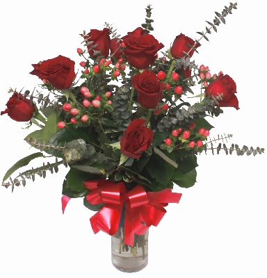 Red Roses, White Lilies, White Mini Callas and Hypericum Berries