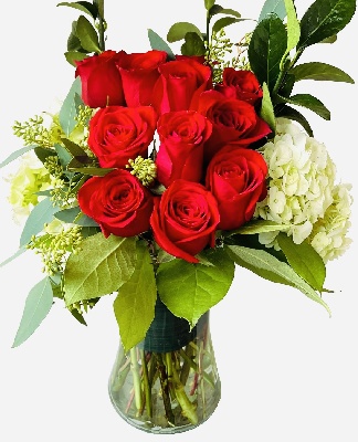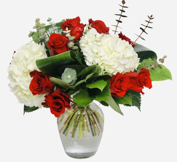 Red Roses and Hydrangeas