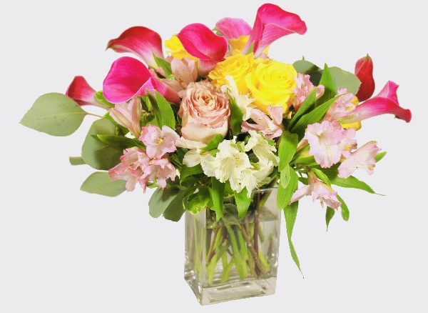 Mini Calla Lilies, Yellow Roses and Alstroemerias