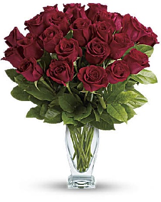 Two dozen iconic red roses with gorgeous Couture Vase